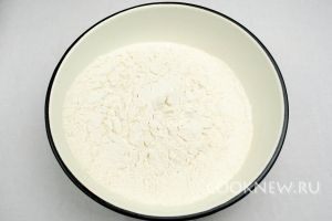 Просеять муку, насыпать горкой на поверхность стола или в удобную миску