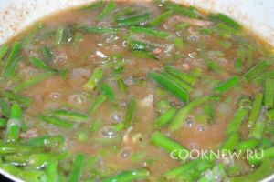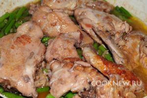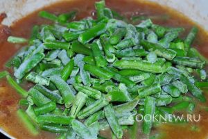 Вынимаем готовые куски курицы и добавляем стручковую фасоль