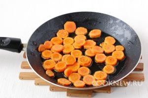 Морковь почистить, порезать кружочками, обжарить по 1 минуте с каждой стороны