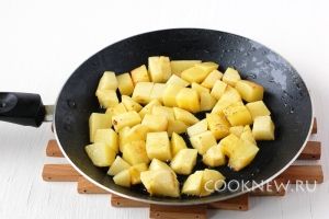 Картофель почистить, порезать кубиком, слегка обжарить со всех сторон
