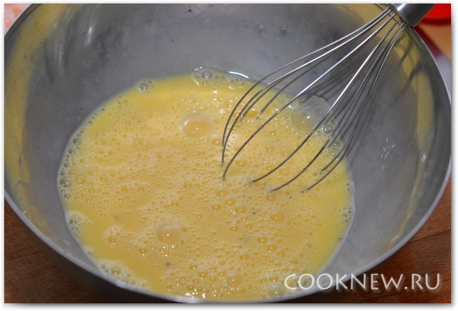 Венчиком взбиваем яйца и молоко, солим и перчим; отставляем в сторону