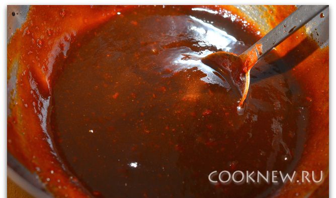 Делаем маринад: смешиваем томатную пасту, соевый соус и сахар