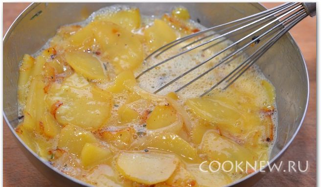 Готовый картофель перекладываем в яйца. Хорошо перемешиваем