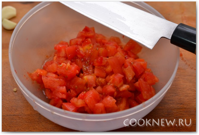 Нарезаем помидоры кубиками