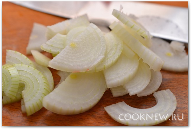 Нарезаем лук полукольцами.