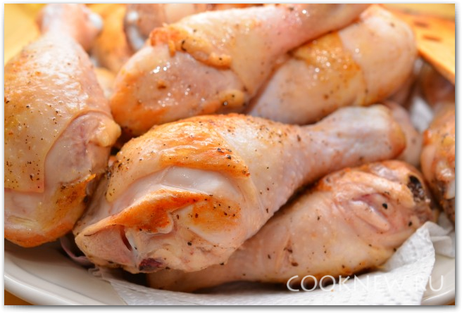 Перекладываем курицу на бумажные полотенца, чтобы стёк лишний жир