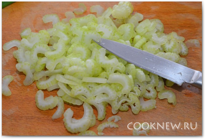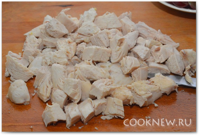 Готовое филе нарезаем достаточно крупными кусочками, примерно по 1,5-2 см.