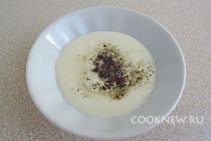 Сметану соединить с уксусом, перцем и солью