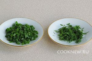 Зелёный лук и укроп вымыть, обсушить и мелко нарезать