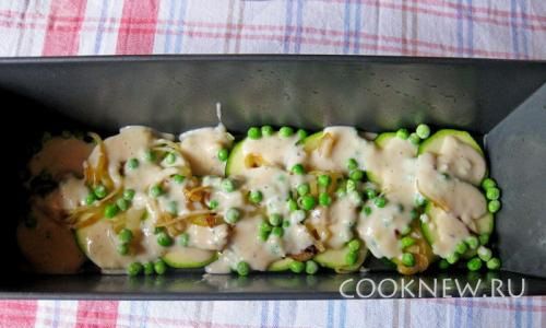 Запеканка из цуккини и зеленого горошка получается легкой, сочной и ароматной, благодаря соусу бешамель с луком и пряностями. Это блюдо очень полезное, так как в кабачках и зеленом горошке содержится немалое количество витаминов, микро и макроэлементов, а также грубых волокон, что положительно сказывается на работе кишечника, а следовательно и всего организма