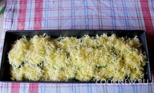 Последний ряд кабачков посыпьте тертым сыром