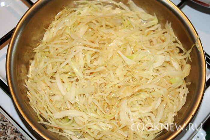 Шинкуем четверть кочана капусты. Припускаем в масле, пока капуста не станет более мягкой.