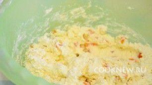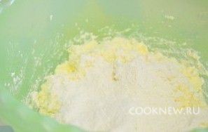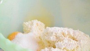 Муку постепенно всыпать в творожную массу, тщательно перемешивая