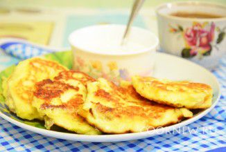 Всё аккуратно перемешать. Массу выкладывать на разогретую сковороду с растительным маслом (не делайте сырники тонкими, иначе они будут разваливаться).