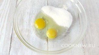Взбиваем миксером на низкой скорости яйца с сахаром
