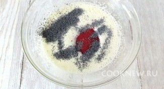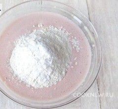 Перемешиваем смесь венчиком и всыпаем просеянную с разрыхлителем пшеничную муку.