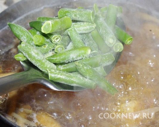 Через 5 минут добавляем фасоль.