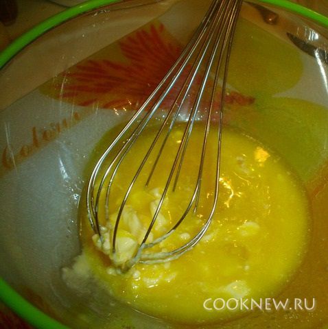 В миску добавить масло, желтки,сахар и лимонную цедру и хорошо все растереть веничком.
