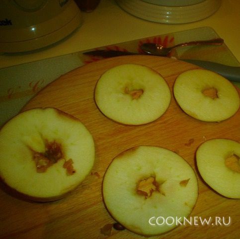 У второго яблока вырезать сердцевину и порезать кружочками.