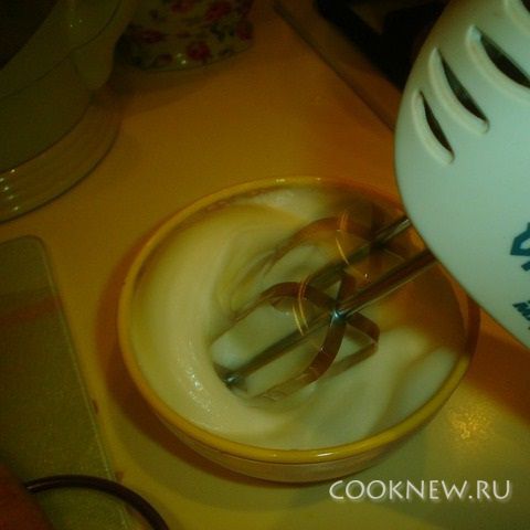 Белки взбить с солью миксером в густую пену. Добавить к массе.