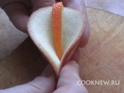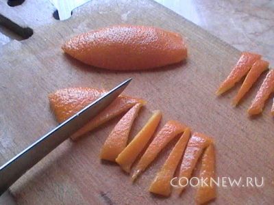 Пестик: нарезаем цедру апельсина на тонкие полоски. В стакане воды растворить 0,5 стакана сахара. Поставьте на огонь. И поварите пестики до мягкости.