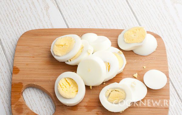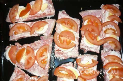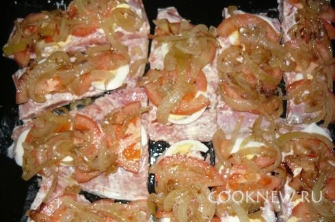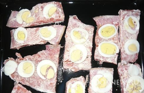На противень выкладываем нашу рыбку,сверху кладем яйца.