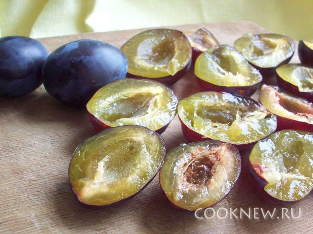 Сливы моем, разделяем на половинки,удаляем косточки.