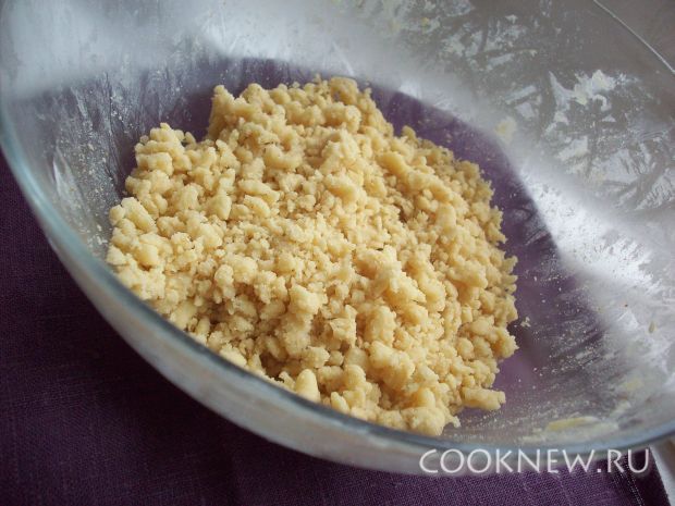 Оставшееся тесто перетираем между пальцами до такой консистенции крошек. Можно добавить столовую ложку панировочных сухарей(по желанию).