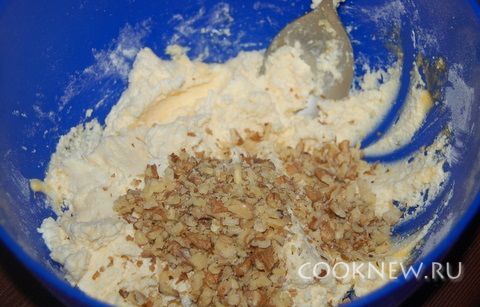 Орехи порубить и добавить в тесто.