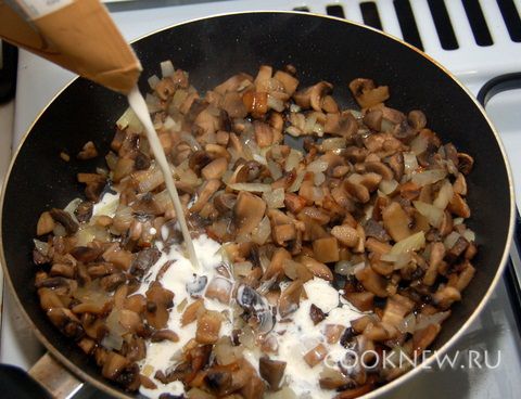 Добавить сливки, перемешать,посолить. Немного потушить.