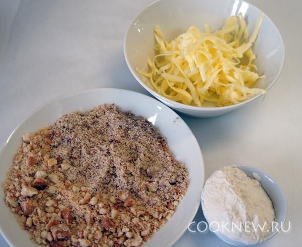 Готовим крошку: холодное сливочное масло трем на терке. Соединяем его с мукой и сахаром. Перетираем массу руками, чтобы получилась крупная крошка.