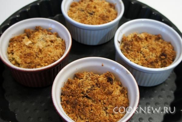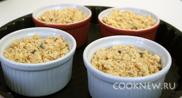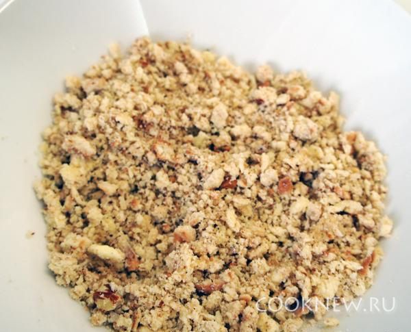 К массе добавить рубленные миндаль(2-3 стол ложки) и печенье. Крошку поставить в холодильник.