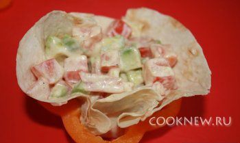 Лаваш нарезать кругами. Размер окружности лаваша должен быть больше,чем размер окружности перца