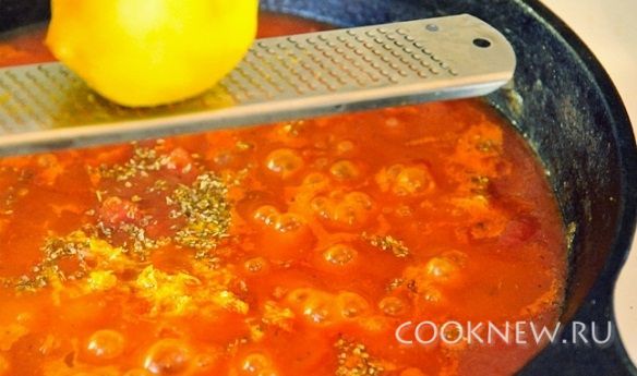 Готовое блюдо сбрызните лимонным соком и украсьте петрушкой.