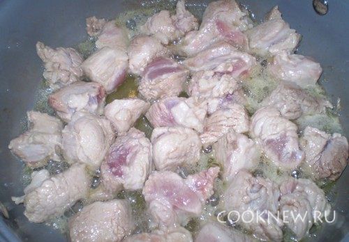 Обжариваем на растительном масле мясо.
