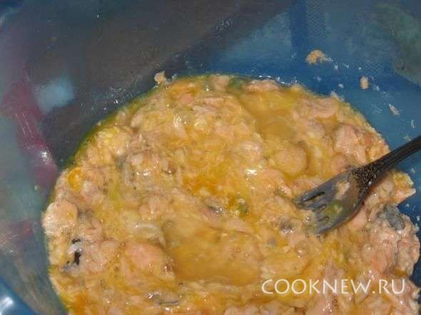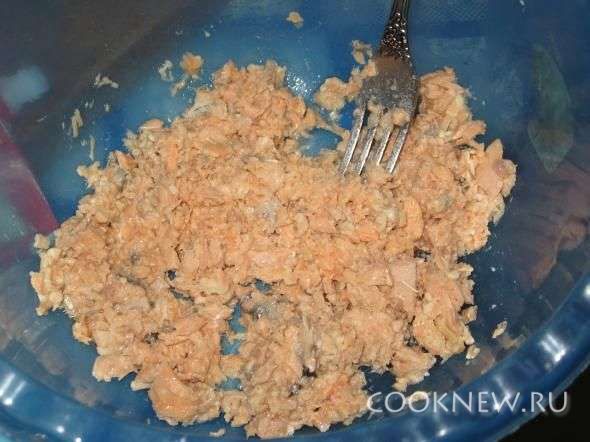 Консервы размять вилкой.