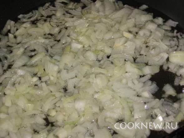 Обжарить лук.