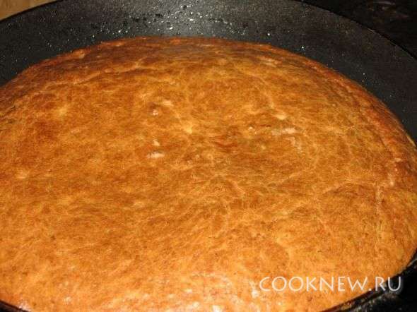 Готовое тесто переложить в форму и выпекать в разогретой до 200 С духовке в течение 30 минут.