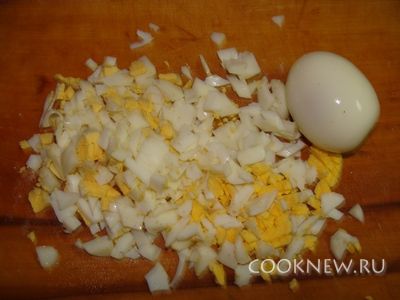 Отварить яйца и измельчить.