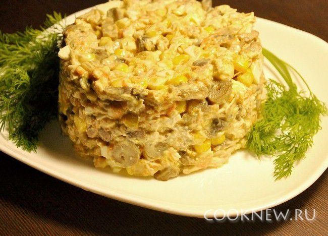 Заправить майонезом и подавать.