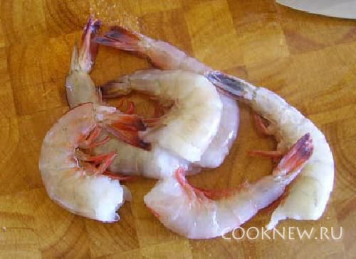 Креветки отварить и очистить.