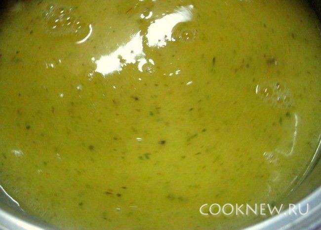 Добавить бульон, сыр, соль, специи по вкусу. Довести до кипения и влить сливки.