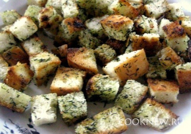 Обжарить батон на масле с укропом.