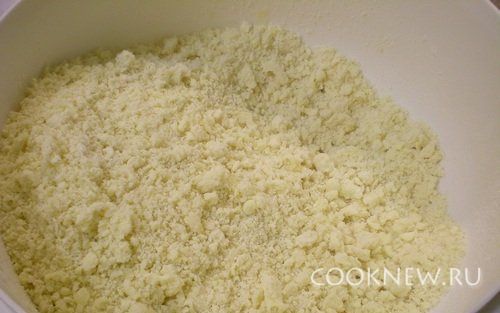Муку, разрыхлитель смешать с холодным маргарином. Порубить в мелкую крошку.