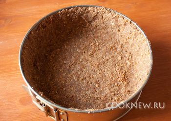 Сливочное масло растопить и добавить к крошке. Переложить в форму для запекания и распределяем по дну и стенкам.