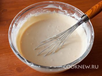 Добавляем по одному яйцу, размешивая после каждого. Добавляем ликер и крахмал.