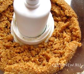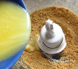 Печенье измельчить в блендере до состояния крошки. Добавить 125 гр растопленного масла.
