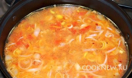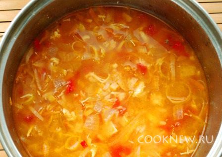 Добавить томаты и бульон. Потушить 10 минут.