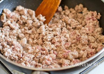 На масле обжарить фарш.