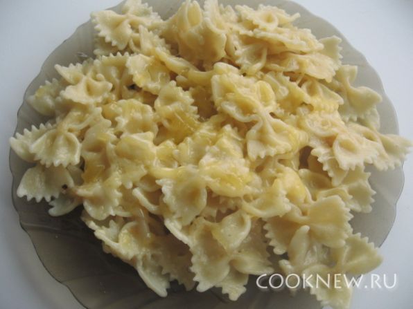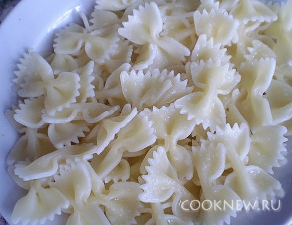 Отварить макароны согласно инструкции. Добавить капельку растительного масла, чтоб макароны не слиплись.